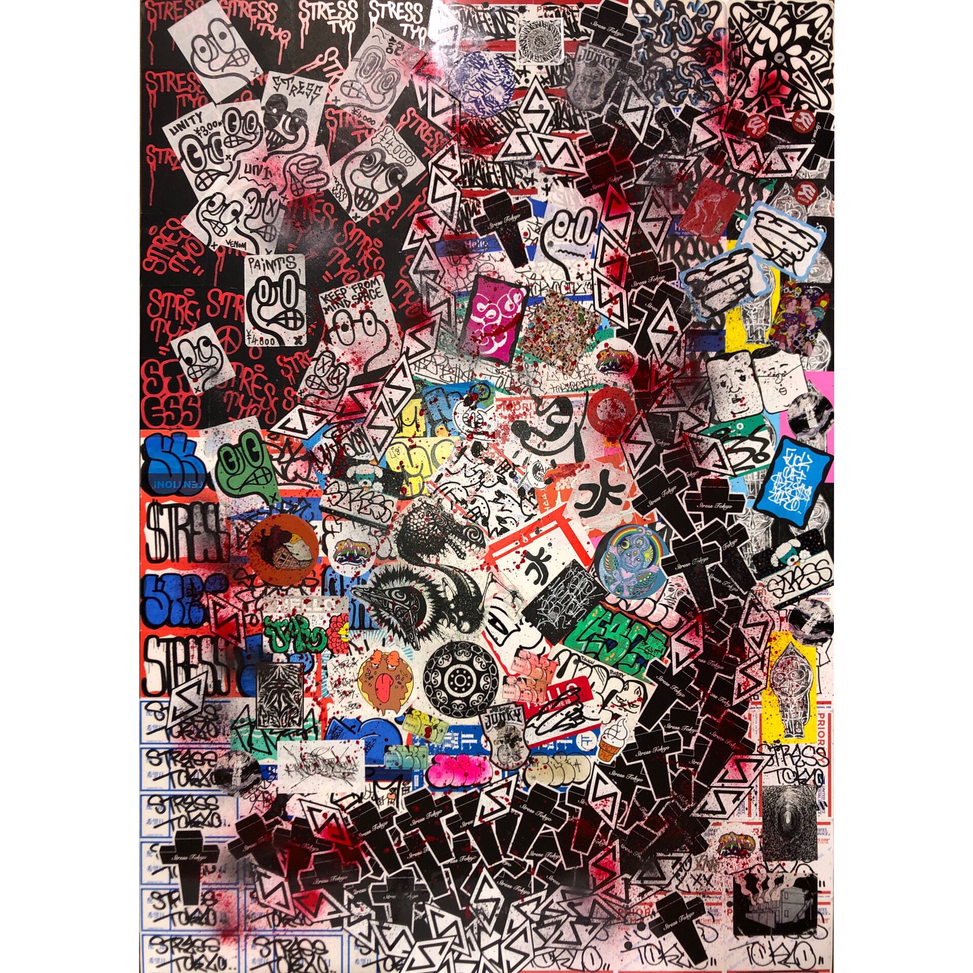 STRESS TYO始動から、仕事・遊びの中で、様々なアーティストからいただいたステッカーを使用。