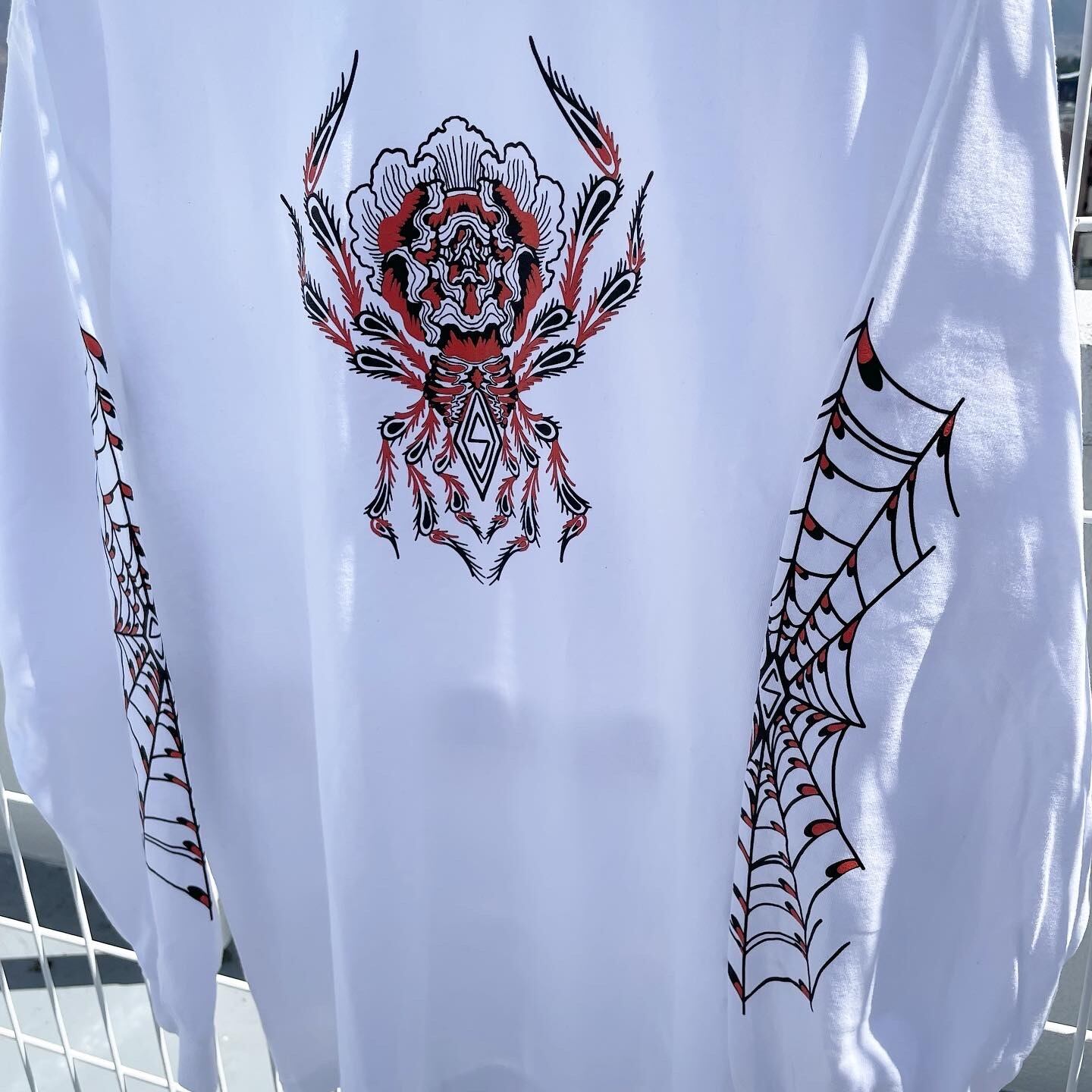 タトゥー特有のタッチで描かれたスパイダー、そして両袖のスパイダーネット。クラッシックなカラーリングで仕上げた、雰囲気抜群なアイテム。